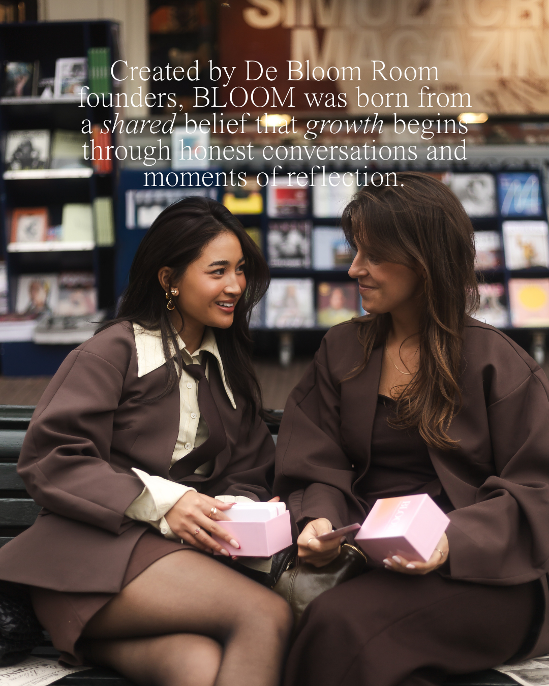 BLOOM is a reflective card game for ambitious women. Designed to spark meaningful conversations, self-awareness, and clarity in your career and business journey. Created by De Bloom Room founders Marjolein & Ribka, this deck invites you to slow down, listen to your intuition, and honor your ambition — one conversation at a time.